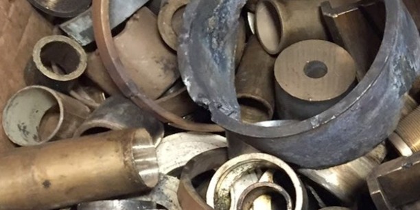 Glass med skruer og spiker, elektromotorer, lysestaker, pyntegjenstander, dørhåndtak/beslag, smykker/knapper, bestikk